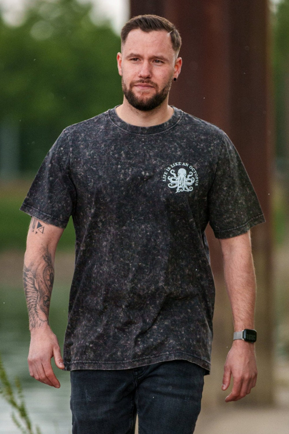 „Acid Edge“ – Männer-Shirts im Acid-Washed-Style mit größerem Logo